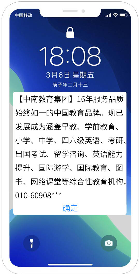 是指用戶在收到閃信群發內容后,無需打開,短信內容直接顯示在用戶手機屏幕上,用戶如果沒有點擊閱讀,則閃信內容一直有顯示,用戶必須點擊才能關閉,真正實現了高閱讀率、高到達率!提升了用戶對產品的轉化率!